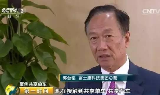富士康科技集團總裁 郭臺銘: 就是現(xiàn)在接觸到共享單車、共享汽車,進入到這些很多的網(wǎng)絡(luò)的,等于說硬件和軟件要結(jié)合的時代,所以說富士康做到這個就蠻重要的。我們在制造的領(lǐng)域,在設(shè)計開發(fā)的領(lǐng)域,可以把這家公司很快地讓它有一個市場占有率。