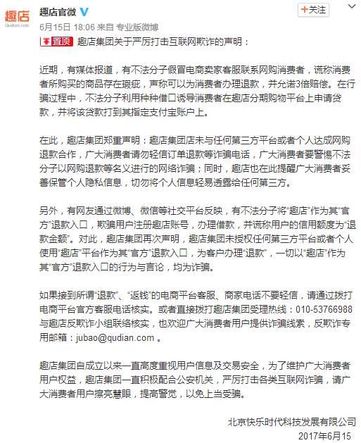 隨后,該網(wǎng)友指出的“趣店集團(tuán)”,官微作出相關(guān)聲明: