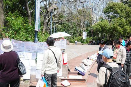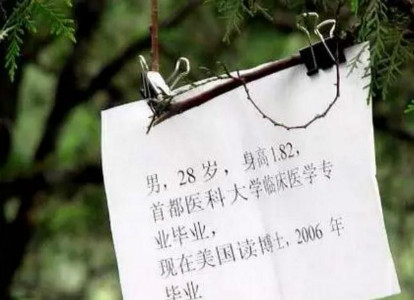 所謂"白發(fā)相親角",顧名思義,就是以50后、60后的父母為主體的"交易市場",而其兒女則是被明碼標(biāo)價(jià)的"商品"。除了北京的"白發(fā)相親角"之外,全國類似的相親角還有很多,大部分都是在公園里。比如上海的人民公園、廈門的中山公園、廣州的天河公園、西安的革命公園、濟(jì)南的千佛山公園以及哈爾濱兆麟公園里都有非常有名的"相親角"。