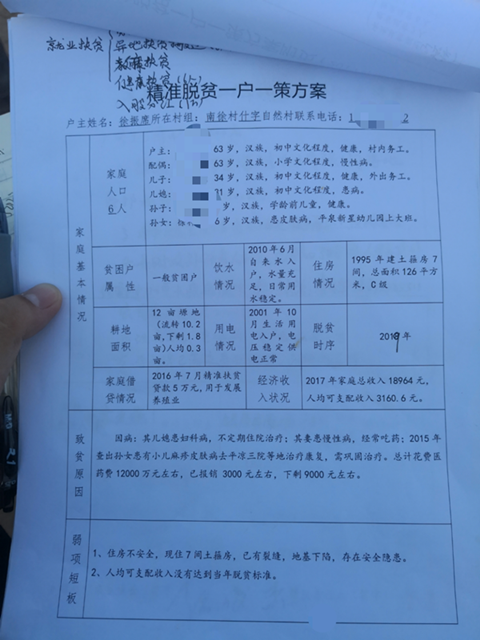 過去,鎮(zhèn)原縣雖然很多貧困戶家里墻上也都貼上了扶貧信息表格,但只停留在反映貧困戶基本信息層面,對于致貧原因、扶持舉措等內(nèi)容則填得非常簡單,也沒有涉及精細(xì)化的幫扶內(nèi)容和算賬式的增收計(jì)劃。
