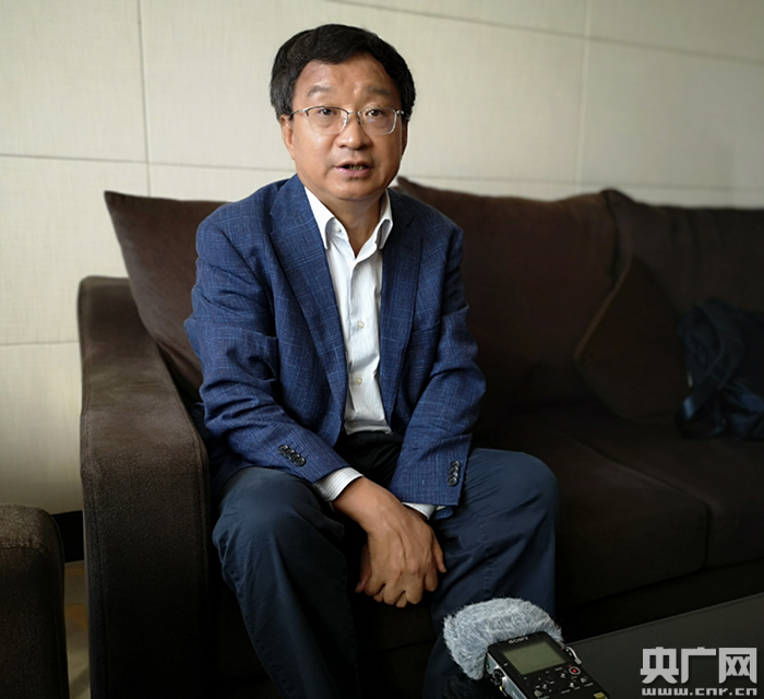 中國(guó)工程院院士萬(wàn)建民接受中央廣播電視總臺(tái)央廣記者專訪(中央廣播電視總臺(tái)央廣記者 蔣勇 攝)