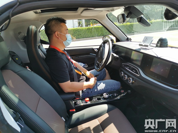 記者體驗(yàn)無人駕駛共享轎車(總臺(tái)央廣記者佟亞濤 攝)