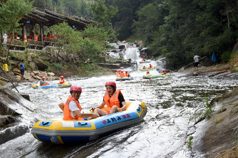 近日,江西多地持續(xù)高溫,位于婺源縣的五龍?jiān)礃O限漂流景區(qū)迎來(lái)旅游高峰,眾多游客前來(lái)體驗(yàn)親水漂流項(xiàng)目,樂享夏日清涼。