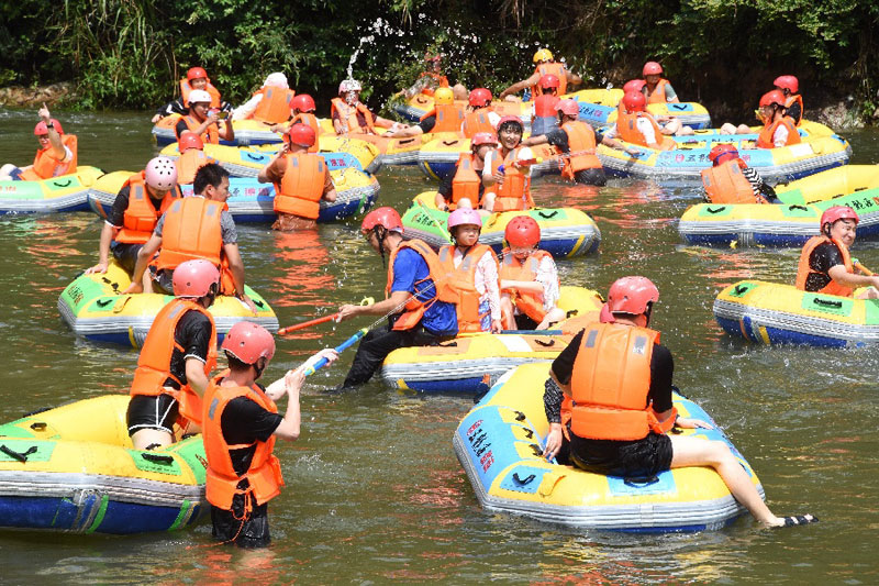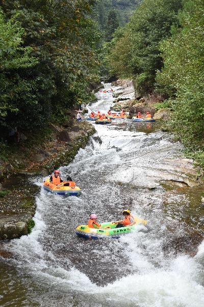近日,江西多地持續(xù)高溫,位于婺源縣的五龍?jiān)礃O限漂流景區(qū)迎來(lái)旅游高峰,眾多游客前來(lái)體驗(yàn)親水漂流項(xiàng)目,樂享夏日清涼。(通訊員 詹衛(wèi)華)