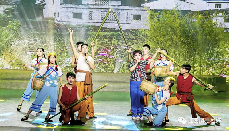 客家山歌——形式多樣。銅鼓民歌有民間小調(diào)、號子、山歌、燈歌、風(fēng)俗歌等數(shù)種,其中以“山歌”、“小調(diào)”為主,表現(xiàn)的是客家人的社會生活、田間勞作、上山砍柴、談情說愛等情景。在音樂曲風(fēng)上,保留著較為純正的客家語言本色。主要代表曲:上山有茶農(nóng)的《打鼓鏟山歌》、下河有筏工的《灘歌》、婦女在家紡線有《車車歌》、孩童游戲有《螃蟹歌》、傳授知識、傾吐愛慕、打趣取樂有多種格調(diào)的《盤歌》。人民音樂出版社出版的《中國音樂詞曲》,選取銅鼓急板山歌《賣余糧》作為“山歌”的唯一例曲。