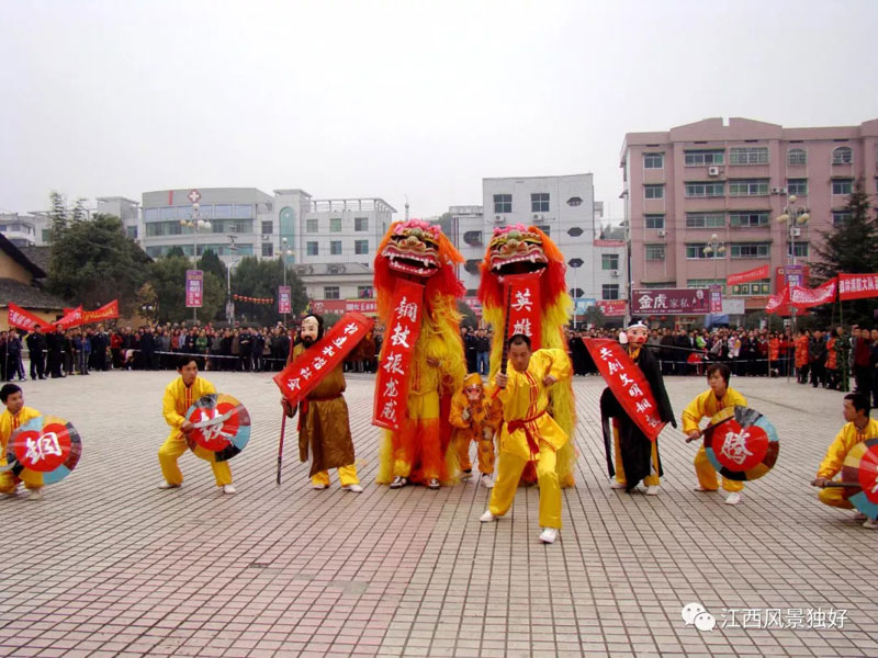 客家燈彩——活靈活現(xiàn)。銅鼓客家獅、太平燈、漁樵耕讀、七鯉搶蝦等燈彩都是群眾喜聞樂見的歡慶活動,均入選了省級非物質(zhì)文化遺產(chǎn)保護(hù)名錄。其中,銅鼓客家獅將獅由“怪獸”化為“神獸”,并通過舞蹈、武術(shù)、雜技、戲劇等多樣性表演來表達(dá)新春祝福。銅鼓客家獅一般從每年農(nóng)歷初一始在祠堂內(nèi)請神、拜獅、起蘸,正月十五勾燈結(jié)束。其間,每到一村先尋一開闊地表演孫悟空、豬八戒、沙和尚降獅(三僧伴舞風(fēng)趣幽默,獅有熊獅、眼獅、悶獅等動作);另有疊花架,十八般武藝對練,雜技表演等,全套表演人數(shù)十四人,時間約二小時左右。表演結(jié)束后由悟空引獅至各家送福送喜。