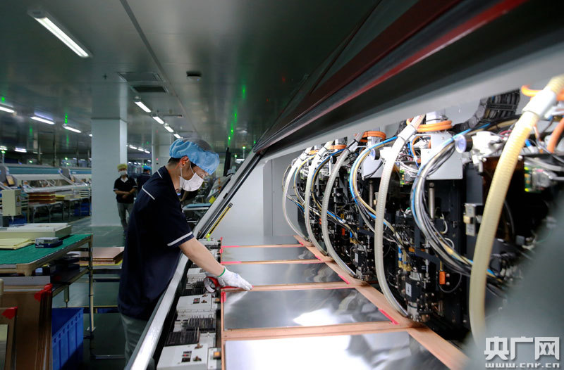 5月20日,江西(吉水)景旺精密電路有限公司5G線路板專(zhuān)業(yè)生產(chǎn)車(chē)間,技術(shù)工人正在高度自動(dòng)化生產(chǎn)線監(jiān)控5G專(zhuān)業(yè)線路板生產(chǎn)。