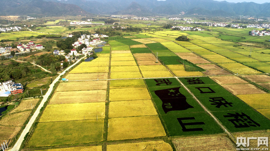 央廣網(wǎng)湖口9月18日消息(記者鄧玉玲 通訊員鄭飛華)9月17日,湖口縣武山鎮(zhèn)武前村金黃稻浪層層疊疊,從高空俯瞰,猶如“大地染金”,與稻田里的巨幅書畫、秀美的山川、美麗的村莊相映成趣,點(diǎn)綴著秋收的大地,美不勝收。