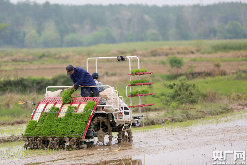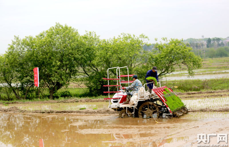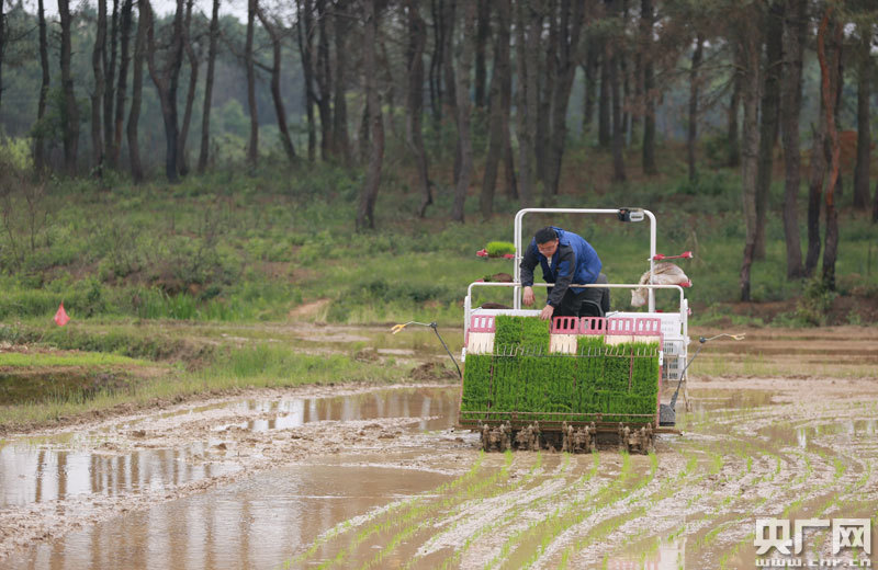 4月14日,江西省吉安市吉水縣尚賢鄉(xiāng)田螺邊村農(nóng)機(jī)來回穿梭,該縣中波農(nóng)機(jī)服務(wù)隊(duì)的操作手正駕駛著插秧機(jī)進(jìn)行春播。