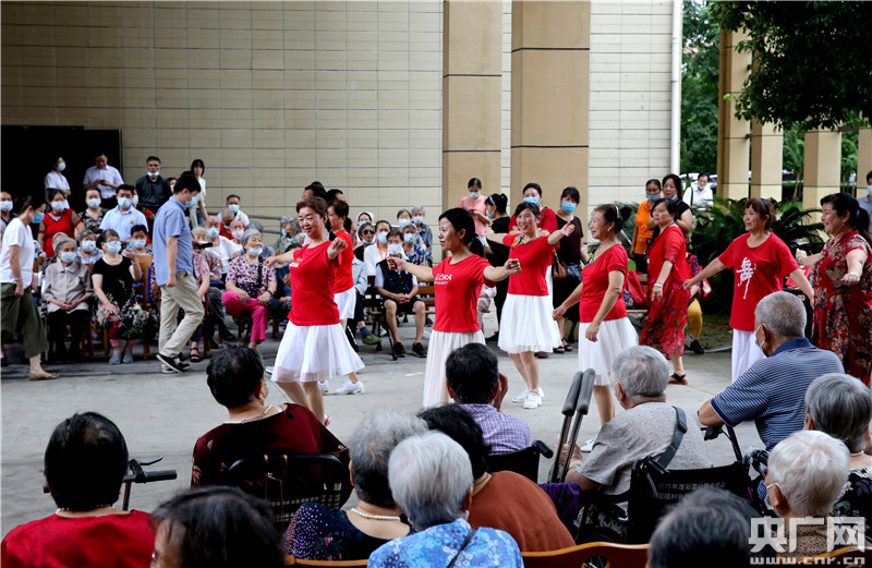 6月24日,在江西省南昌市青山湖區(qū)社會(huì)福利中心,來(lái)自社會(huì)各界的愛(ài)心志愿者正在為老人們表演廣場(chǎng)舞、旗袍秀、歌舞、舞龍燈等節(jié)目,讓老年朋友度過(guò)了一個(gè)開(kāi)心的端午節(jié)。