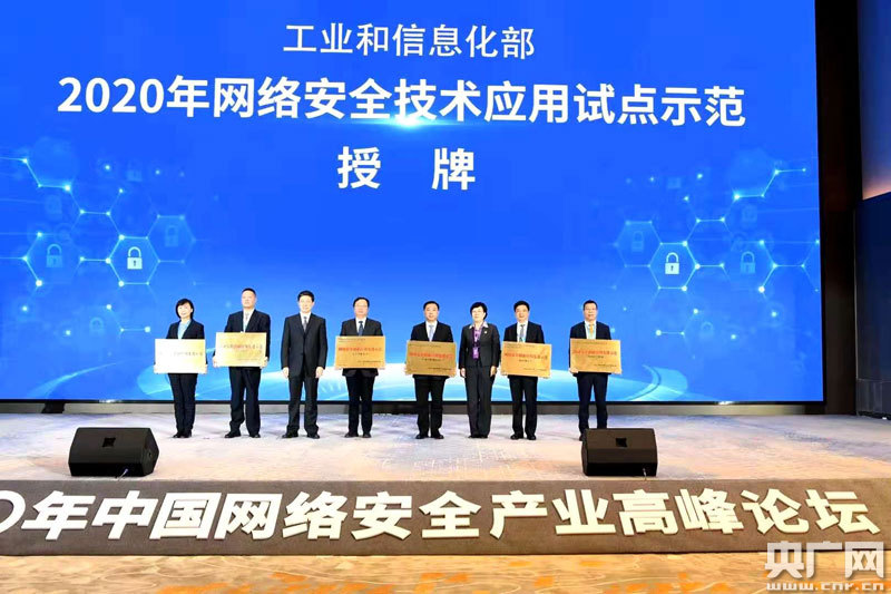 2020中國網(wǎng)絡(luò)安全產(chǎn)業(yè)高峰論壇上對網(wǎng)絡(luò)安全技術(shù) 應(yīng)用試點(diǎn)示范進(jìn)行授牌