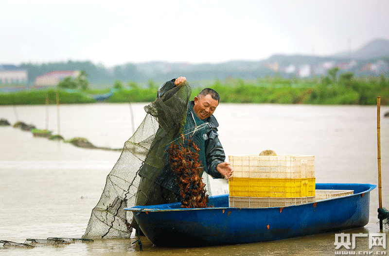 江西省吉安市吉水縣醪橋鎮(zhèn)元石村稻蝦共作基地,村民正在起籠收獲小龍蝦