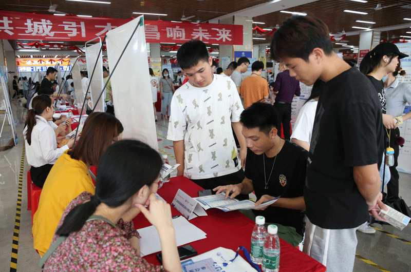 央廣網(wǎng)南昌7月8日消息(記者王一凡 通訊員熊家福)又到一年畢業(yè)季。日前,江西省南昌市東湖區(qū)就業(yè)創(chuàng)業(yè)服務(wù)中心在南昌工學(xué)院開展畢業(yè)生雙向選擇招聘活動(dòng),吸引了1800多名應(yīng)屆畢業(yè)生參加“雙選”,現(xiàn)場(chǎng)有365人達(dá)成就業(yè)意向。據(jù)悉,參加本次招聘活動(dòng)的110個(gè)用工企業(yè),為大學(xué)生們提供了金融、房地產(chǎn)、教育、信息技術(shù)、制造業(yè)等2600余個(gè)就業(yè)崗位。
