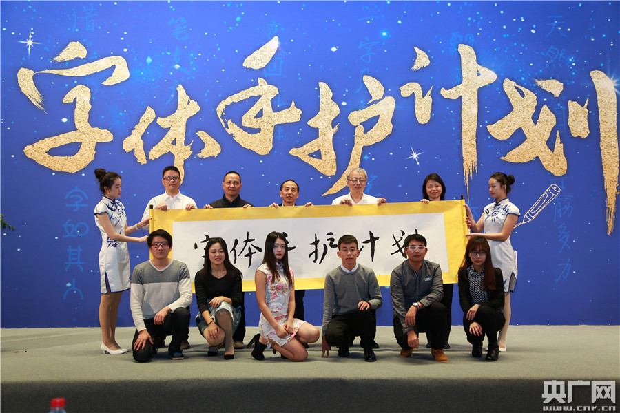 央廣網(wǎng)北京1月12日消息 昨日(11日),由方正手跡發(fā)起的“字體手護(hù)計(jì)劃”首屆年度分享交流會(huì)在北京大學(xué)舉行。教育部語(yǔ)言文字信息管理司司長(zhǎng)田立新、著名書(shū)法家葉培貴、中央人民廣播電臺(tái)央廣網(wǎng)副總編輯伍剛、方正集團(tuán)副總裁劉建應(yīng)邀出席,與現(xiàn)場(chǎng)大學(xué)生代表一起分享了有關(guān)漢字文化傳承的新形勢(shì)、新方法。圖為與會(huì)專(zhuān)家學(xué)者與6位“字體手護(hù)大使”一起啟動(dòng)“2017字體守護(hù)計(jì)劃”。 -
