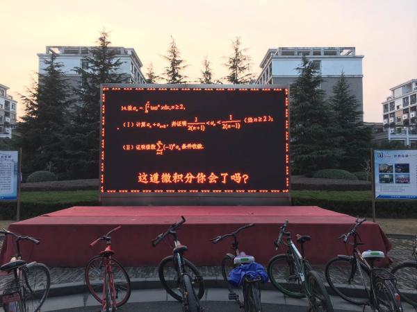 時(shí)下正值高校期末考試周。1月13日起,浙江大學(xué)求是學(xué)院藍(lán)田學(xué)園門(mén)口的電子大屏幕滾動(dòng)播放著一道微積分題,還配有文字:這道微積分你會(huì)了嗎?