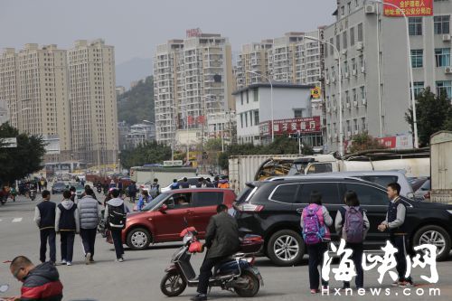 記者在現(xiàn)場發(fā)現(xiàn),這兩條路旁建有西園小學、福州教育學院第二附屬中學。中小學生每天上下學,都必經(jīng)玄南嶺路與站東路。記者采訪時,正值中學生放學期間,記者發(fā)現(xiàn),因人行道、斑馬線被車輛占據(jù),不少學生只好走在機動車道上,穿行于車流中,險象環(huán)生。