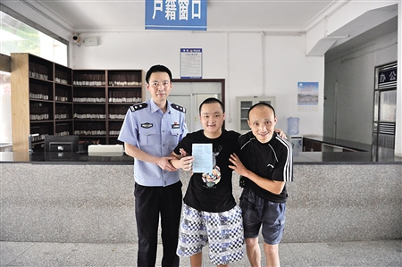 安排好一切后,6日一大早,龔小兵便開車來到小峰家附近,和胡仁明一起將小峰扶上車,隨即上路。一路上小峰非常興奮,而龔小兵卻眉頭緊鎖,因?yàn)閺闹貞c到渠縣臨巴派出所來回有400多公里,包括100多公里山路,一個(gè)急剎、一個(gè)轉(zhuǎn)彎都可能給小峰造成傷害。“我開車的時(shí)候眼睛都不敢眨一下,生怕出問題。”龔小兵說,好在一路順利,到臨巴派出所后只花了十幾分鐘就辦好了相關(guān)手續(xù)。