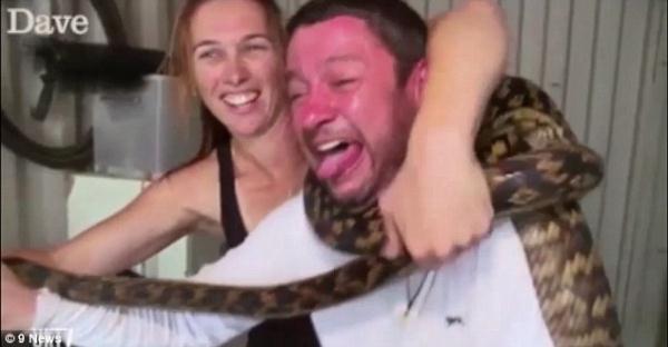 據(jù)英國《每日郵報(bào)》8月25日報(bào)道,英國蟲害防治員克雷格 弗里曼在澳大利亞錄制一檔真人秀節(jié)目時被一條巨蟒繞頸,無法脫身,其美女搭檔凱莉當(dāng)即施以援手,幫他脫險(xiǎn)。