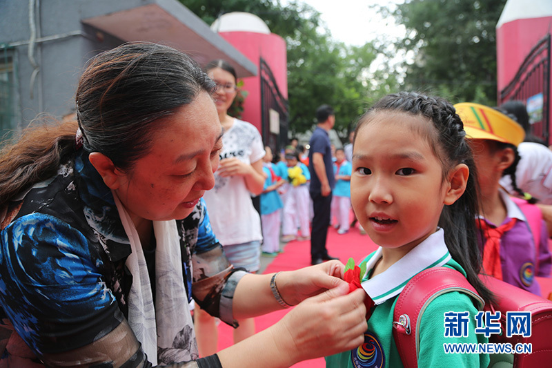 景泰小學門前設置移動紅綠燈,交警助學生通行。京華時報記者 趙思衡 攝 清華附小開學典禮上,學生與奧運六朝元老王義夫合影。開學典禮上,潘建偉為同學們送出量子衛(wèi)星模型禮物,中關村一小宣布成立“葵園量子精靈實驗室”。