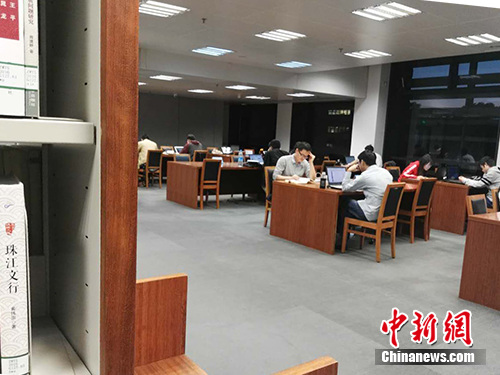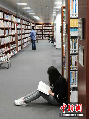 王贊向記者證實(shí)了這樣的說(shuō)法,“前幾個(gè)月放暑假的時(shí)候,來(lái)看書的人就很多。那時(shí)候甚至有不少人坐在(閱覽室的)地上看書,靠著墻,一排一排的”!斑@幾天大家都放假,人會(huì)多些。暑假時(shí)看書的人更多,如果晚到一點(diǎn)可能就占不到好座位了!
