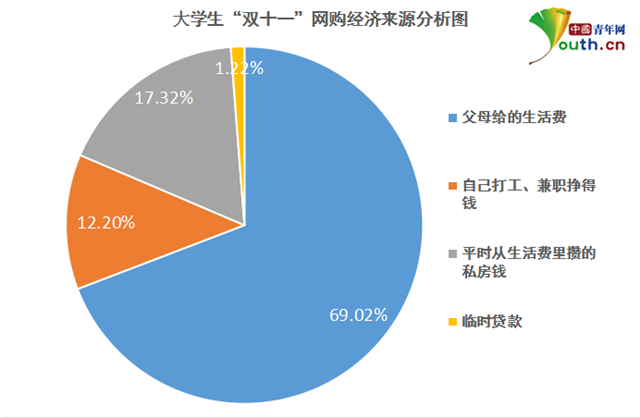 圖為大學(xué)生“雙十一”網(wǎng)購(gòu)經(jīng)濟(jì)來(lái)源分析。中國(guó)青年網(wǎng)實(shí)習(xí)記者 李華錫 制圖