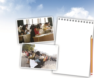 考生們進(jìn)場(chǎng)前還要“抱下佛腳”,不過(guò)考題的知識(shí)點(diǎn)跨度很大。 新華報(bào)業(yè)視覺(jué)中心記者 邵丹 攝