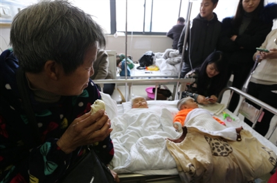 “孩子營養(yǎng)不良,沒有血色!蓖蹼p的朋友圈描述說,老人年紀(jì)大,只能一個一個抱,孩子長期睡著,頭都變形了。熬了一個通宵的老人,白天扛不住睡著了,連續(xù)三次孩子輸液沒有液體了,都是自己家人發(fā)現(xiàn)提醒。王雙在朋友圈呼吁,能不能幫忙請個護工。