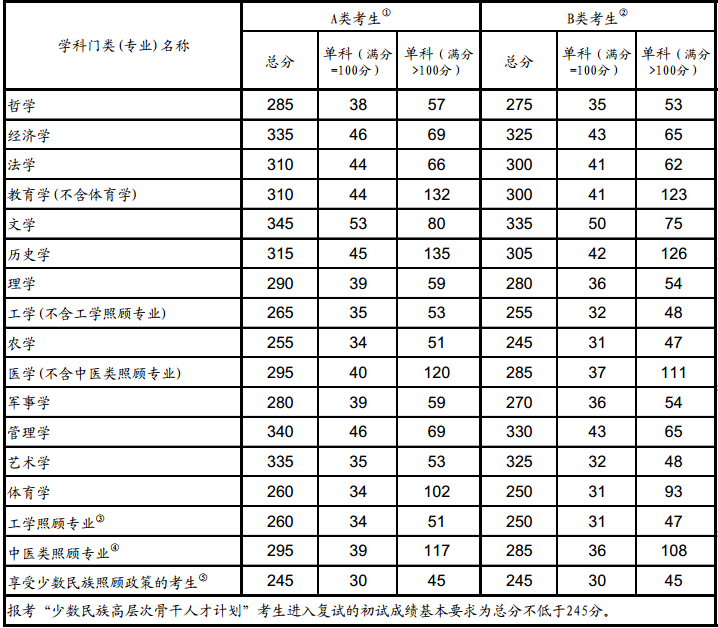 2017年全國碩士研究生招考考生進入復試的初試成績基本要求(學術(shù)學位類)