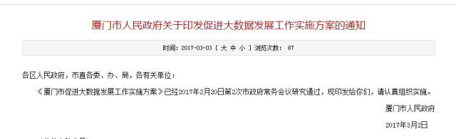 日前,廈門市政府發(fā)布了《廈門市促進(jìn)大數(shù)據(jù)發(fā)展工作實(shí)施方案》,廈門市將以政府大數(shù)據(jù)開放開發(fā)為先導(dǎo),推動大數(shù)據(jù)技術(shù)與社會經(jīng)濟(jì)各領(lǐng)域應(yīng)用的深度融合;以企業(yè)為主體,突破大數(shù)據(jù)關(guān)鍵技術(shù)研發(fā),著力推進(jìn)數(shù)據(jù)匯集和發(fā)掘,深化大數(shù)據(jù)在各行業(yè)創(chuàng)新應(yīng)用,重點(diǎn)錘煉若干優(yōu)勢產(chǎn)業(yè)環(huán)節(jié),全面提升廈門市大數(shù)據(jù)產(chǎn)業(yè)發(fā)展水平。
