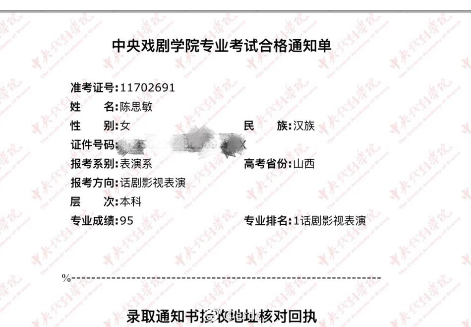 近日,一位獲得中央戲劇學(xué)院與上海戲劇學(xué)院表演專業(yè)雙料第一的美女考生被曝光。這位美女考生名叫陳思敏,眉眼間充滿英氣,頗像俞飛鴻,不是現(xiàn)在大熱的“網(wǎng)紅臉”。 -