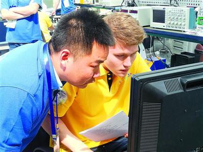 昨天“星光計劃”職業(yè)院校技能大賽上,首次迎來德國代表隊,與中國學(xué)生同場競技。彭德倩 攝