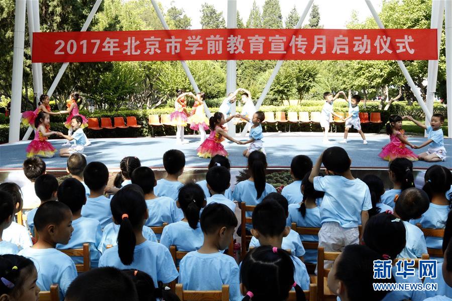5月27日,中國(guó)兒童中心實(shí)驗(yàn)幼兒園的孩子們?cè)诨顒?dòng)現(xiàn)場(chǎng)表演。當(dāng)日,2017年“全國(guó)學(xué)前教育宣傳月”活動(dòng)北京地區(qū)分會(huì)場(chǎng)啟動(dòng)儀式在中國(guó)兒童中心舉行。從2012年起,教育部將每年5月20日至6月20日定為“全國(guó)學(xué)前教育宣傳月”,2017年宣傳月的主題是“游戲——點(diǎn)亮快樂(lè)童年”。新華社記者 張玉薇 攝