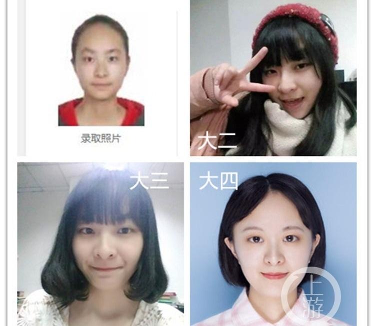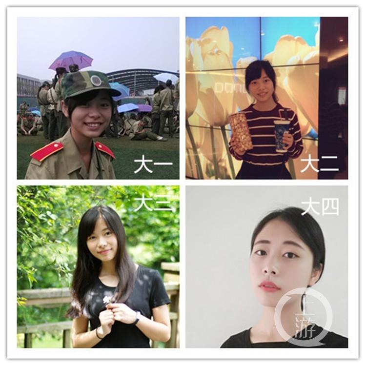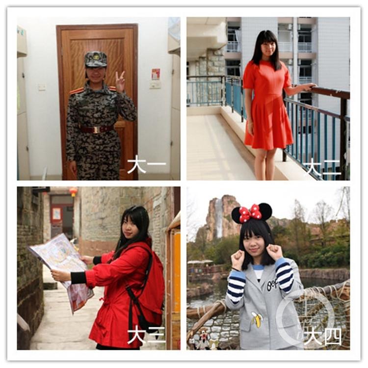 近日,重慶多所高校的畢業(yè)生,用四年的照片來記錄大學(xué)四年的成長痕跡,引發(fā)網(wǎng)友感嘆。圖為西南大學(xué)秦文琰,不僅樣貌如同換了個人一般,學(xué)習(xí)更進(jìn)一步,現(xiàn)已保送到武漢大學(xué)新聞與傳播學(xué)院。 -