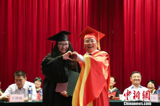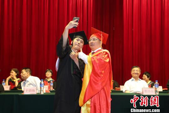 在隨后的頒證環(huán)節(jié),學(xué)生和院長更是玩起“花式合影”。不管是各式自拍、比心、點贊、擁抱,還是剪刀手、嘟嘴賣萌,院長馬杰都來者不拒,讓在場眾多媒體人士感慨,“看別人家的畢業(yè)典禮!”(完)