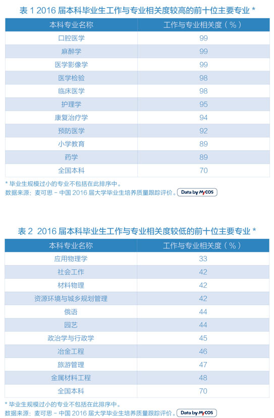 人民網(wǎng)北京6月16日電 (記者林露)高考結(jié)束后,志愿填報(bào)成了家長(zhǎng)和考生面臨的另一道難題。麥可思近日發(fā)布《2017年中國(guó)大學(xué)生就業(yè)報(bào)告》(就業(yè)藍(lán)皮書(shū)),報(bào)告指出,三成以上畢業(yè)生工作與所學(xué)專(zhuān)業(yè)不對(duì)口;醫(yī)學(xué)類(lèi)專(zhuān)業(yè)工作與專(zhuān)業(yè)相關(guān)度高;應(yīng)用物理學(xué)工作與專(zhuān)業(yè)相關(guān)度較低;“與職業(yè)期待不符”、“迫于就業(yè)壓力”是選擇不對(duì)口工作的主要原因。