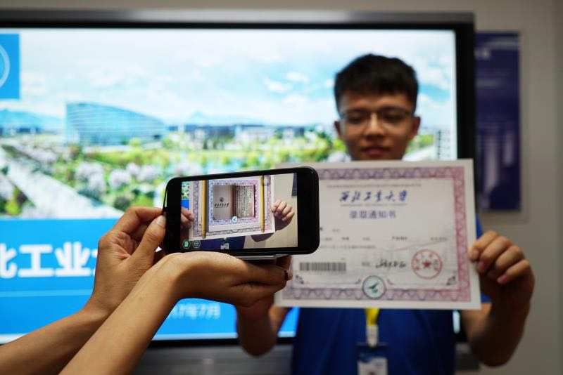 “新生錄取通知書雖然只是一張紙,但精心嵌入的AR技術(shù),是為了通過其展現(xiàn)一種前沿的氣質(zhì)、一種自豪的傳遞;精心編制校情校史及學(xué)科特色等主題內(nèi)容,更是一種感情的投入、一種精神的傳承及一種希望的寄托,將錄取通知書衍生為學(xué)校為新生送去的專屬禮物。AR錄取通知書不僅讓錄取信息‘動’了起來,更通過新媒體新技術(shù)使學(xué)校育人工作‘活’了起來,提前了創(chuàng)新大門的開啟時(shí)間,豐富了創(chuàng)新基因的傳承渠道!蔽鞅惫I(yè)大學(xué)招生辦公室副主任謝丹說。