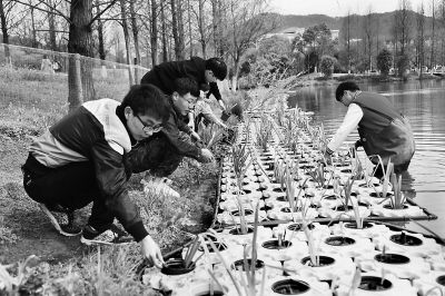 浙江農(nóng)林大學學生水上種草清除水污染