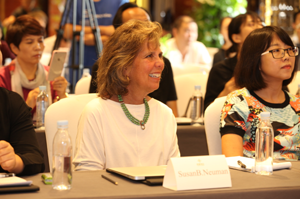 為了讓孩子享受正統(tǒng)的國(guó)際化學(xué)前教育,悅寶園(中國(guó))特別邀請(qǐng)紐約大學(xué)教育學(xué)院教授、小布什政府教育部助理部長(zhǎng)Susan B.Neuman擔(dān)任幼兒園首席顧問(wèn)。發(fā)布會(huì)上,Neuman 教授對(duì)悅寶園的教育理念做出了充分肯定并為大家分析了美式課程的優(yōu)勢(shì)。悅寶園國(guó)際幼兒園沿襲Romp n’ Roll的美式教育理念,以美國(guó)STEAM課程(美國(guó)素養(yǎng)課程)與國(guó)際雙語(yǔ)教育為支點(diǎn),結(jié)合全美主流的幼兒核心課程WOW(world of words),持續(xù)研究最適合中國(guó)0-8歲兒童的ACE課程。ACE課程通過(guò)體能、社交、語(yǔ)言、音樂(lè)、實(shí)驗(yàn)、操作、舞蹈、繪畫(huà)、手工、閱讀等多樣的形式,全面發(fā)展兒童的語(yǔ)言交流能力、邏輯思維能力、獨(dú)立思考能力,團(tuán)隊(duì)合作能力、卓越的領(lǐng)導(dǎo)力和非凡的創(chuàng)造力。會(huì)上,悅寶園中國(guó)區(qū)教研總監(jiān)蔣海燕老師也為大家細(xì)致講解了幼兒園的課程設(shè)置,讓大家了解悅寶園國(guó)際化學(xué)前教育的優(yōu)勢(shì)。