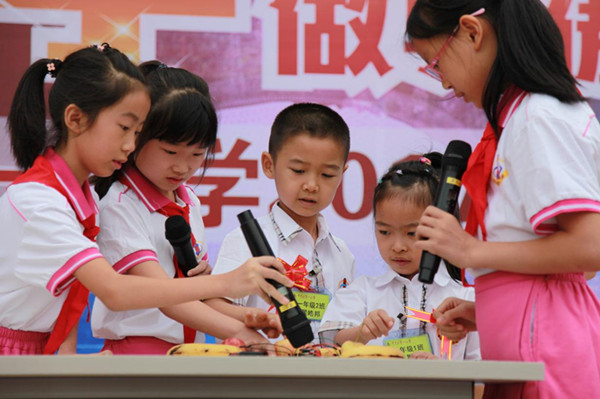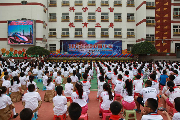 本屆開學(xué)典禮主題為“乘著科學(xué)的翅膀 做驕傲的中國少年”,校長劉暢在致辭中表示,希望孩子們把握難得的好奇心,不斷思考、不斷探索,乘著科學(xué)的夢想,做驕傲的中國少年。