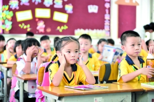鐵一小學一年級新生第一節(jié)課,同學們?nèi)褙炞。廣州日全媒體記者王燕 攝