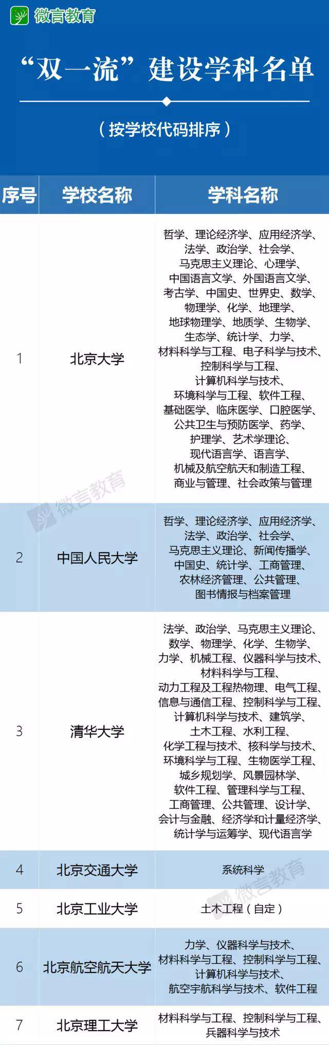據(jù)教育部官方微信“微言教育”消息,教育部、財政部、國家發(fā)展改革委日前印發(fā)《關(guān)于公布世界一流大學(xué)和一流學(xué)科建設(shè)高校及建設(shè)學(xué)科名單的通知》,公布世界一流大學(xué)和一流學(xué)科(簡稱“雙一流”)建設(shè)高校及建設(shè)學(xué)科名單。
