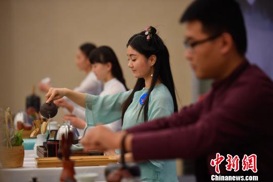 圖為茶藝組參賽者展示茶藝 劉冉陽(yáng) 攝