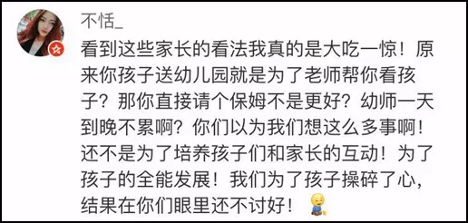 有老師留言表示,這個鍋老師也不背,將幼兒園想成“把孩子往學(xué)校一扔”,這位家長,你是不是有什么誤解。