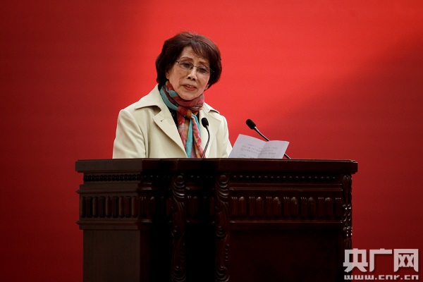 圖為葛蘭老師為語(yǔ)藝節(jié)致賀詞 央廣網(wǎng)記者石昊鑫攝