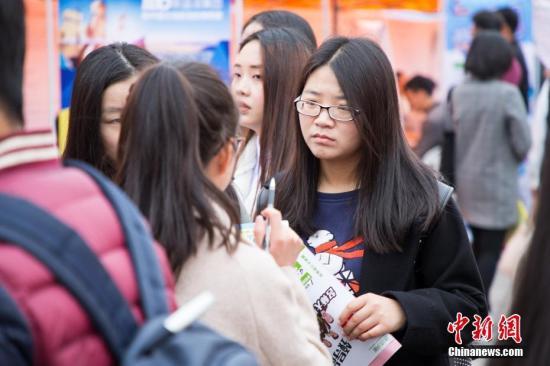 圖為求職者在認(rèn)真了解用人單位相關(guān)情況。 李南軒 攝