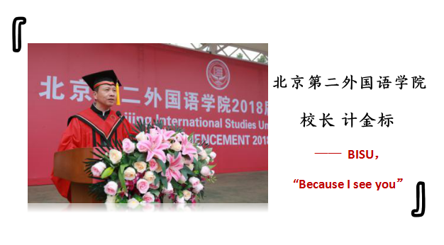 你們常說(shuō)BISU應(yīng)該讀為“Because I see you”,在場(chǎng)的2048位畢業(yè)生,今天這個(gè)珍貴的日子,我想請(qǐng)大家跟母校同頻共振,我說(shuō)“BISU!”,請(qǐng)大家一起說(shuō)“Because I see you!”!癇ISU”四個(gè)字母也會(huì)因?yàn)槟銈冇啦恍葜沟淖非蠖禹懥,I see you means more than I know you,I see you even means more than I love you,即使母校不夠完美,相信在你們心中依然只有母校小而最美!