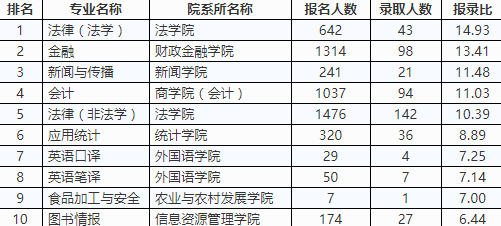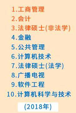 由此可見,工商管理、會計、法律碩士(非法學(xué))連續(xù)數(shù)年成為報考專業(yè)的前三甲,依然是最熱門的專業(yè)。