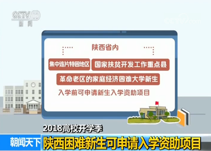 陜西省內(nèi)集中連片特困地區(qū)、國家扶貧開發(fā)工作重點(diǎn)縣、革命老區(qū)的家庭經(jīng)濟(jì)困難大學(xué)新生,入學(xué)前可申請(qǐng)新生入學(xué)資助項(xiàng)目。就讀本省院校的每人500元,就讀省外院校的每人1000元。同時(shí),在陜西省地方高校就讀的建檔立卡家庭的大學(xué)本?茖W(xué)生,每人每年還可領(lǐng)取6000元的助學(xué)金生活補(bǔ)助。