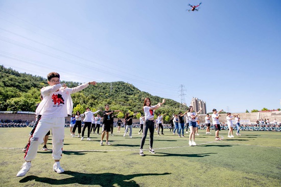 大連東軟信息學(xué)院軍訓(xùn)期間,大二、大三學(xué)生組織快閃為新生打氣。東軟新聞社/供圖