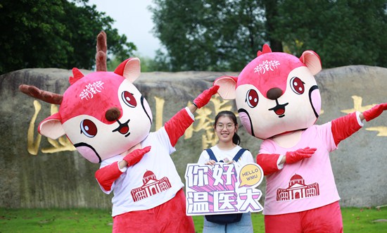 溫州醫(yī)科大學(xué)學(xué)生扮演吉祥物歡迎新生。溫州醫(yī)科大學(xué) 倪劭楷/攝
